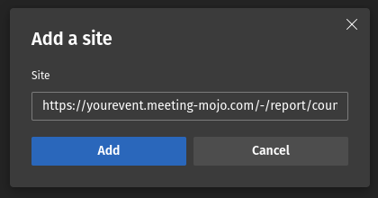 to your event URL, for example:https://yourevent.meeting-mojo.com/-/report